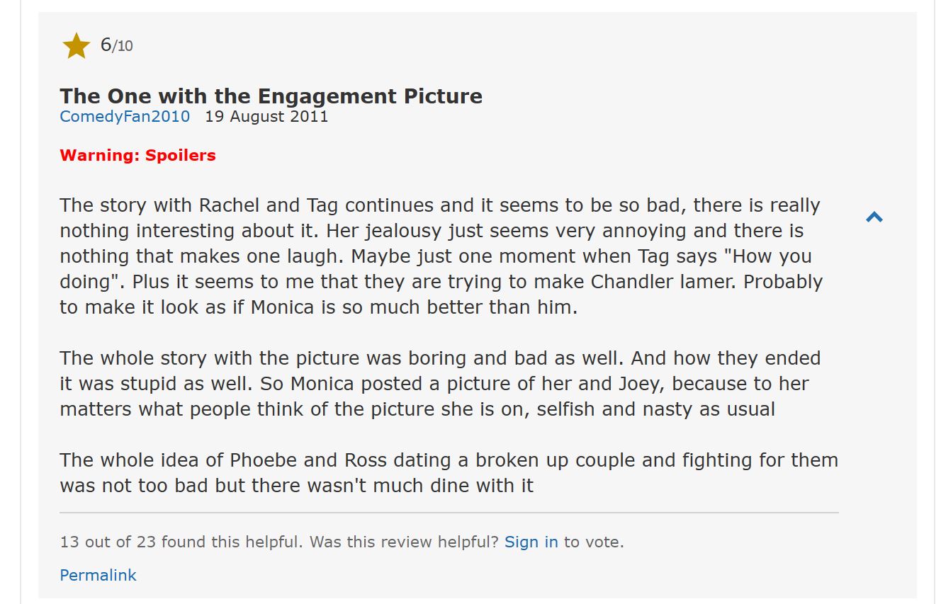 Chandler is unable to smile naturally for his and Monica's engagement photo, so Monica ends up taking a photo with Joey. Joey teaches Tag how to pick up women, much to Rachel's annoyance. Ross and Phoebe date a couple who are divorcing.