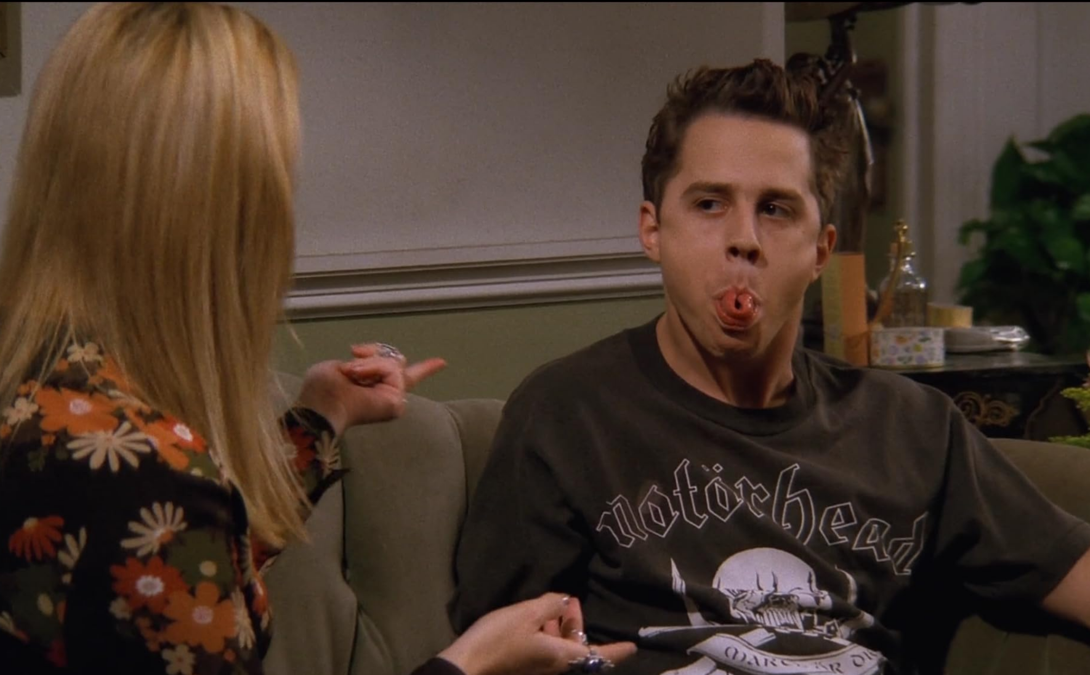 Well, actually, Gunther sent me. You're not allowed to have cups out here is the thing. 동생을 밖에서 기다리는 피비에게 인사를 건내는 레이첼, 피비가 이런저런 얘기를 하다가 너 정말 자상하다고 얘기하자, 실은 건터가 컵 밖에서 쓰면 안된다고 보내서 왔다며 본론을 꺼내는 레이첼